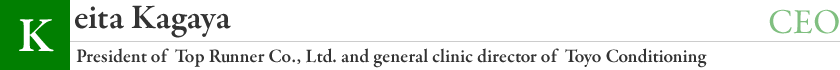 ![[CEO] Keita Kagaya (President of Top Runner Co., Ltd. and general clinic director of Toyo Conditioning)](images/h4_tit01.gif)